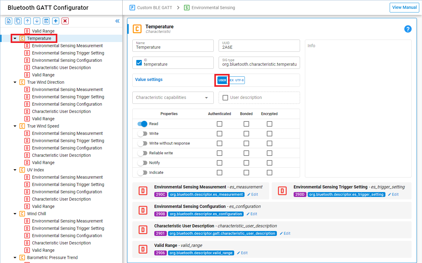 We chose to use the Si7021 sensor due to its energy efficiency, and the necessary libraries are already available and ready for use. What remains now are the essential services and features for BLE connectivity, and here comes the good news. The manufacturer provides comprehensive documentation that will allow us to develop the application efficiently.